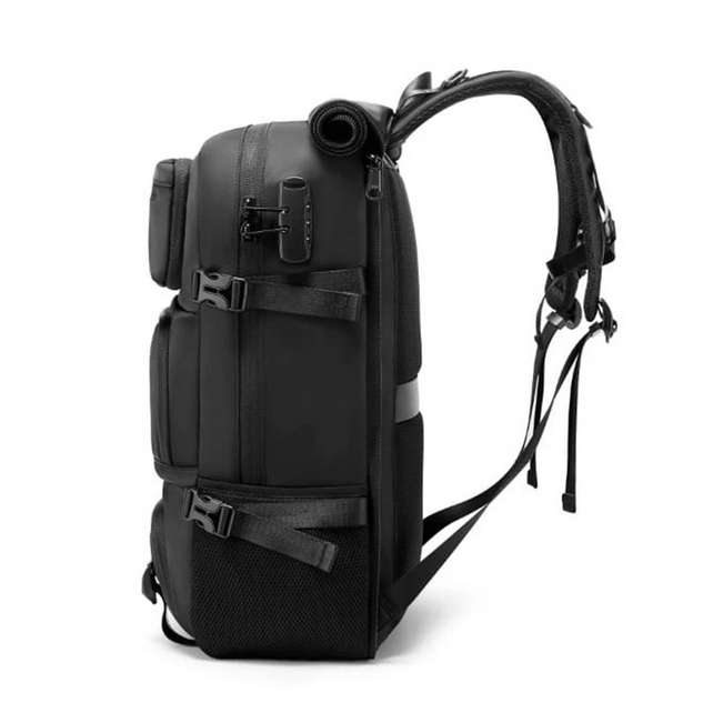 در کنارههای کیف کوله بنج، در هر سمت آن دو بند با سگک محکم طراحی شده است که دو محفظه اصلی را در بر میگیرد. این ویژگی به افزایش ایمنی و استحکام کیف کمک میکند و از حفظ وسایل شما در داخل کوله اطمینان بیشتری میدهد.