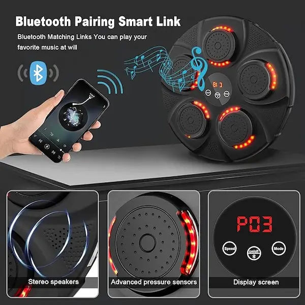 با قابلیت پخش موسیقی و نورپردازی LED هماهنگ با ضرب، میتوانید تمرینات خود را در فضای انگیزشی و ریتمیک انجام دهید. این ویژگی نه تنها تمرین را لذتبخشتر میکند، بلکه به شما کمک میکند ریتم و سرعت واکنش خود را نیز تقویت کنید.
